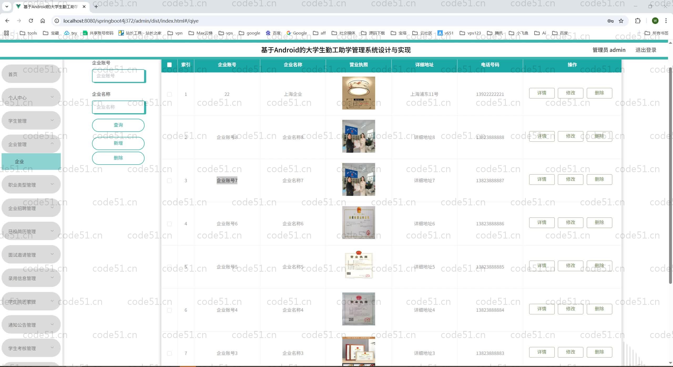 与PC端应用程序相比,大学生勤工助学管理系统的设计主要面向于大学生勤工助学,旨在为管理员和学生、企业提供一个Android的大学生勤工助学管理系统。学生可以通过Android及时查看企业招聘等。